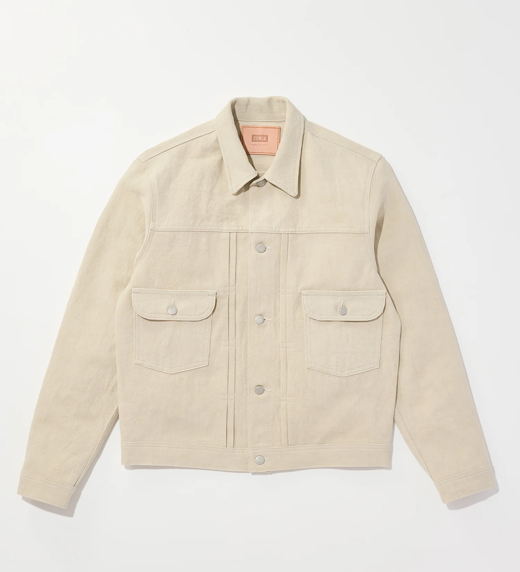 A jacket inspired by the iconic denim jacket from concept stores, crafted from a cotton-linen twill fabric.